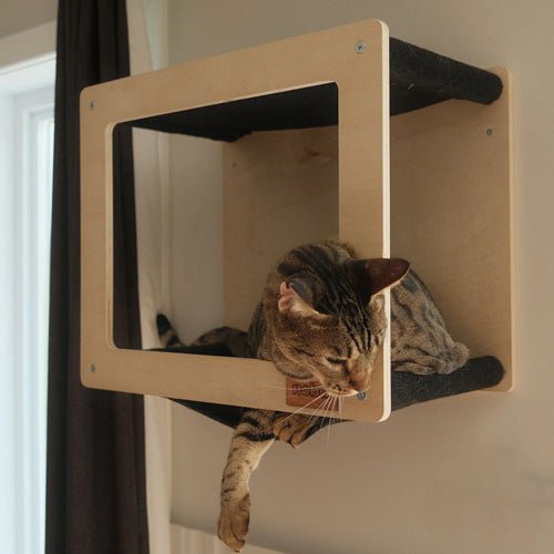 Create a cozy retreat for your cat with Noba® Mural Wall Cat Hideout Square. This compact yet comfortable hideout provides the perfect nook for your cat to relax and unwind. Made with 2 Hammocks on top of each other, the high-grade plywood construction ensures durability, while the sturdy felt carpet interior offers comfort and 2 scratchable surfaces for your furry friend.