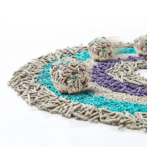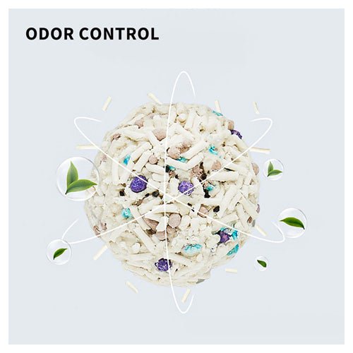 Simply with this innovative and composite tofu litter, mix five elements into a single scoop of cat litter. The tofu litter is made of food-grade soy pulp, making it biodegradable, flushable and safe to use. Mixing with small particles of bentonite clay, allows you to fill the gaps in the tofu cat litter, making the clumping firmer, and wrap more comprehensively. Activated carbon molecules are added to deodorize more effectively through physical adsorption. The purple and blue functional particles provide constant deodorizing and freshness.