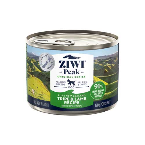 Discover the ZIWI Peak Tripe & Lamb Recipe Canned Dog Food, a premium meal crafted with New Zealand's ethically raised lamb. Ideal for dogs with sensitive stomachs or those ready for adventure, this recipe blends nutritious lamb with palatable green tripe for a carnivore's delight.